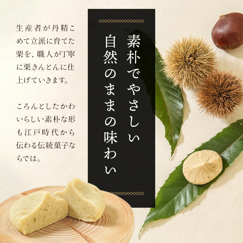 新杵堂では、栗きんとんを作るために、良質な国産栗だけを厳選しています。栗の品質が直接、味わいに影響するからです。だからこそ、新杵堂の栗きんとんは他とは一線を画す美味しさなんですよ。国産栗の選び抜かれた素材だけが持つ、深みとコク、そして繊細な甘さ。それらが融合することで、一口食べた瞬間、幸福感に包まれるような絶品の味わいが生まれます。