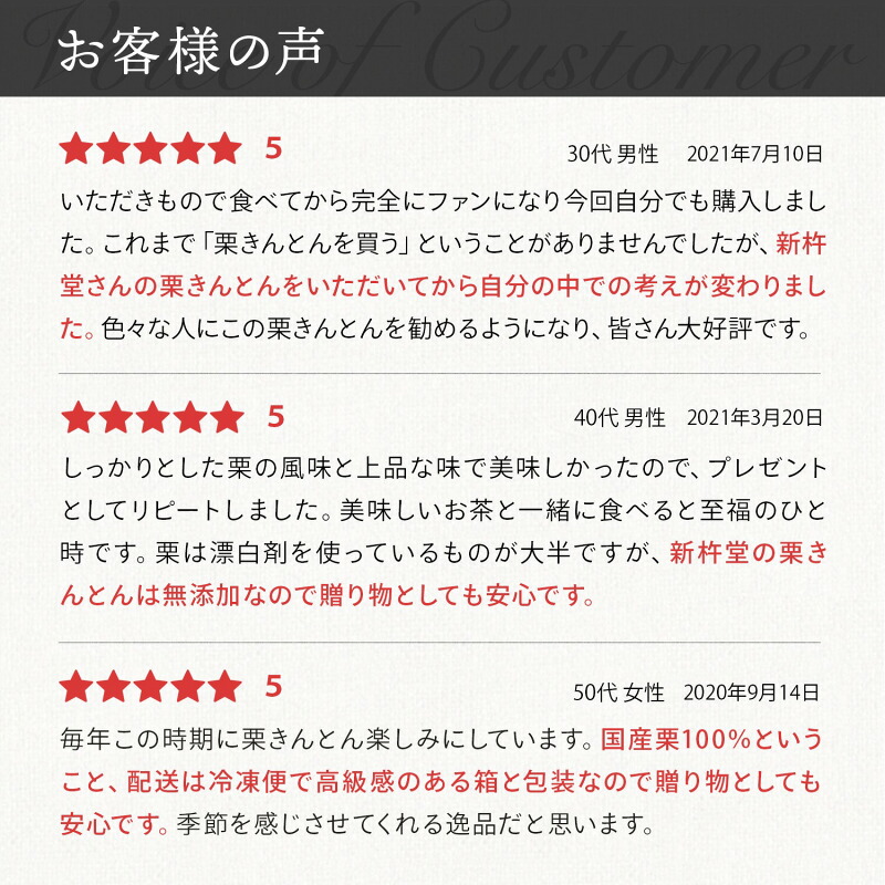 みんなの声!新杵堂の栗きんとんに寄せられた温かいレビュー