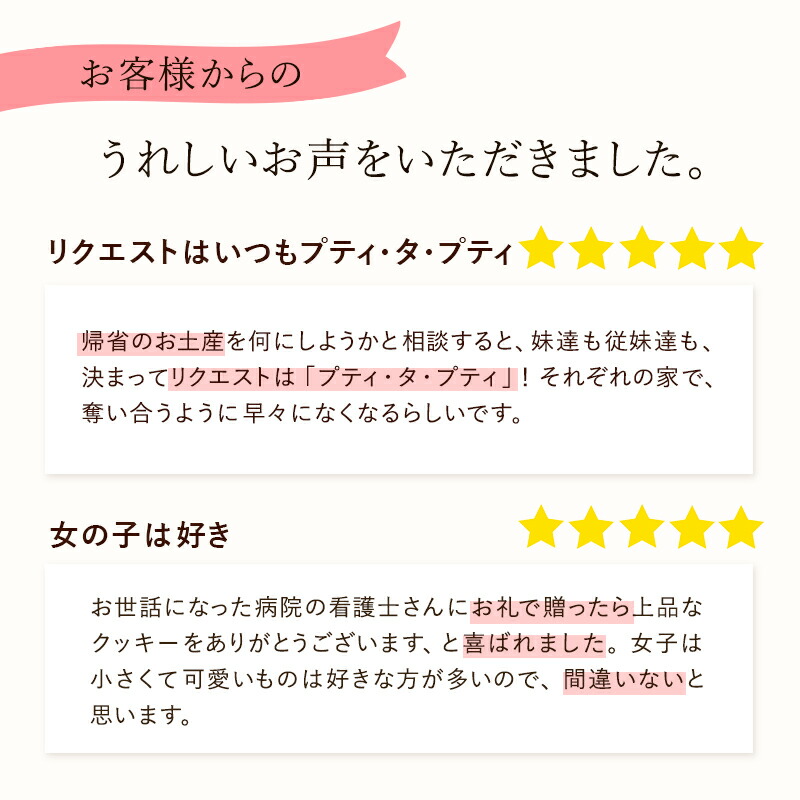 このクッキー缶は既に多くの方に選ばれ、喜びの声が寄せられています。心からの感謝や愛情を込めて選んだギフトが、相手にとっても忘れられない美味しさと幸せをもたらした瞬間のこと、ここで、いくつかの温かいレビューをご紹介しましょう。